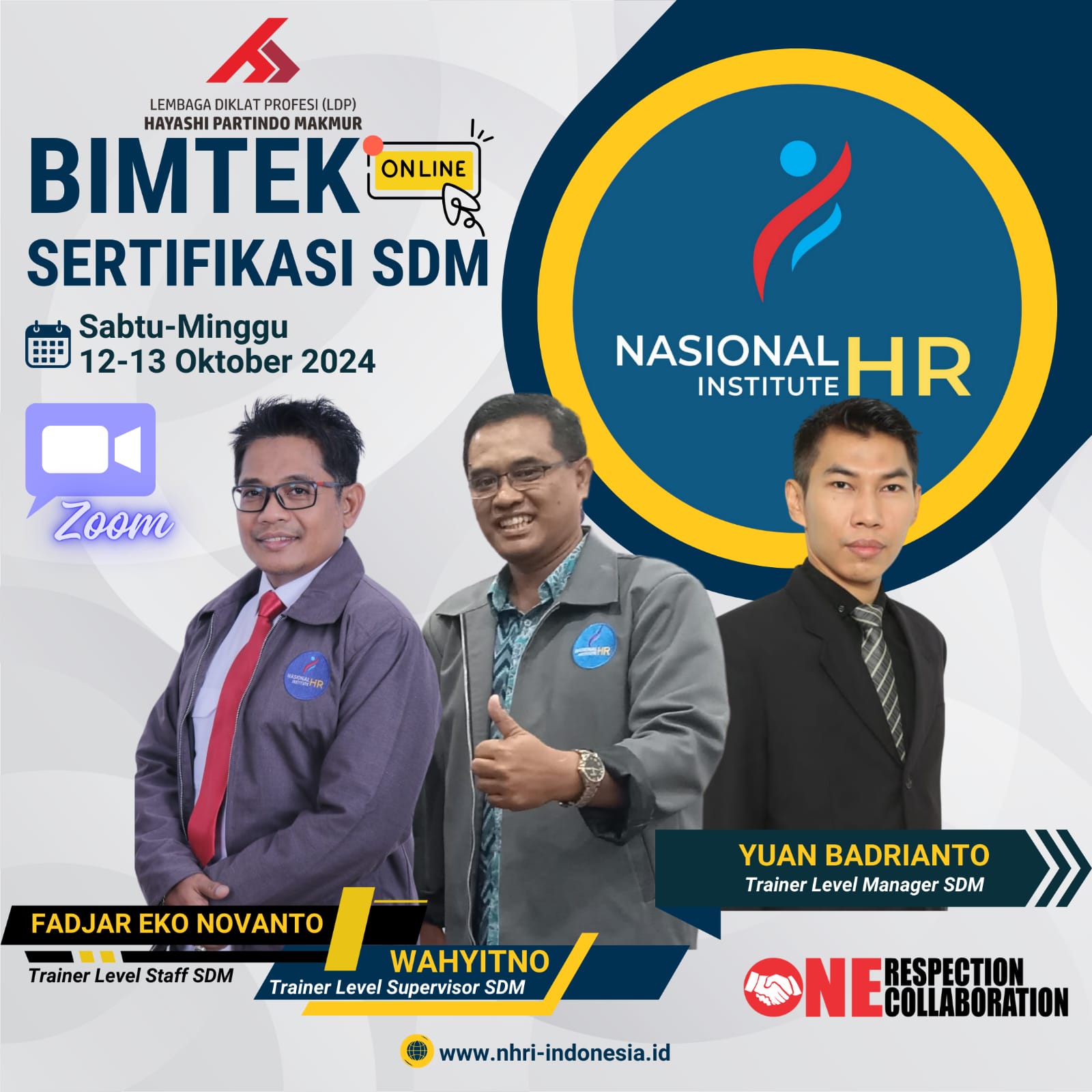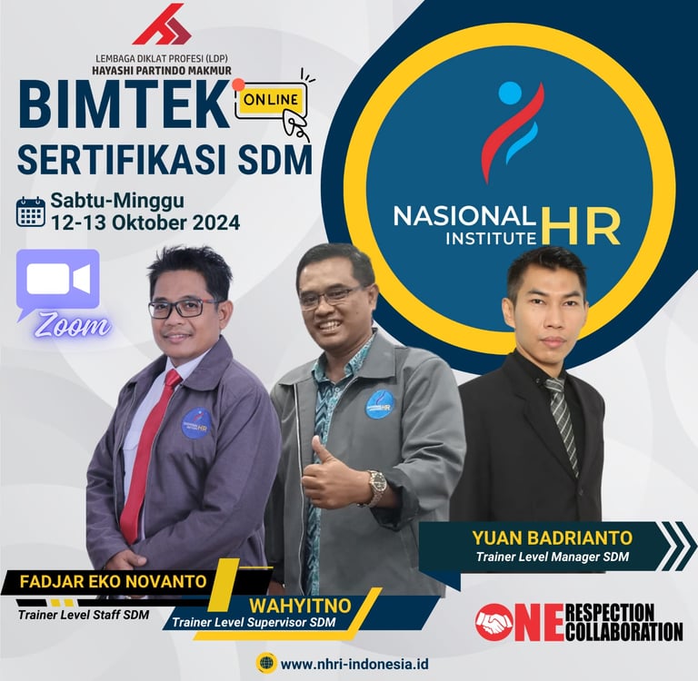 Dalam rangka memperingati HUT Kemerdekaan Republik Indonesia yang ke-79, NHRI dengan bangga berkolaborasi bersama LSP MSDKI dan LPK Hayashi Pratindo Makmur untuk menyelenggarakan program Sertifikasi Profesi HR yang diakui oleh BNSP. Program ini bertujuan untuk meningkatkan kompetensi sumber daya manusia di Indonesia melalui bimbingan teknis (bimtek) sertifikasi SDM yang berkualitas.